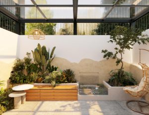 Hình ảnh 3D thiết kế Sân sau tầng 1