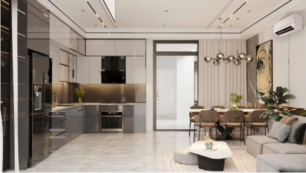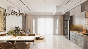 Hình ảnh 3D thiết kế Phòng khách – bếp tầng 3