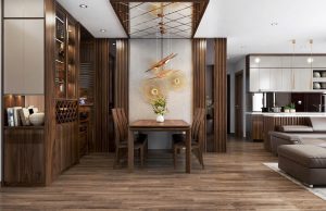 Thiết kế 3D của công trình Vinhomes Ocean Park, Gia Lâm – Chất liệu gỗ Óc Chó sang trọng và đẳng cấp