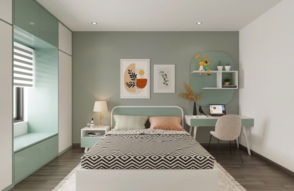 Hình ảnh 3D thiết kế Phòng ngủ con trai 1 – Tầng 4