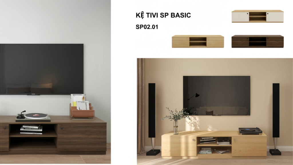 Kệ tivi là một sản phẩm nội thất đa năng, không chỉ dùng để đặt và trưng bày tivi mà còn mang lại không gian lưu trữ và trang trí tinh tế cho ngôi nhà. Với thiết kế hiện đại, tối ưu hóa không gian, kệ tivi thông minh thường được chế tác từ các chất liệu như gỗ tự nhiên, gỗ công nghiệp, đá, nhựa, hoặc kính, đem đến sự hài hòa giữa công năng và thẩm mỹ, phù hợp với mọi phong cách sống.