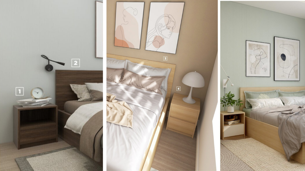 Bộ sưu tập BED SIMPLE với các món đồ như táp đầu giường, giường và bàn làm việc được thiết kế đồng bộ, tạo nên một không gian liên kết liền mạch và tiện ích. Sự kết hợp giữa màu trắng và vân gỗ tự nhiên mang lại cảm giác ấm cúng, đồng thời tạo nên tổng thể thẩm mỹ hiện đại và dễ chịu.
