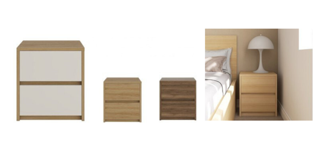 - Gỗ MFC màu vân gỗ đậm/ nhạt, phối ngăn kéo màu trắng/ vân gỗ đậm/ nhạt. Tab 2 ngăn kéo.